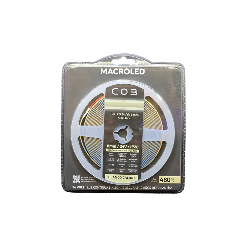 TIRA COB 480 LED BLANCO CALIDO 24V IP20 10W 5MTS.