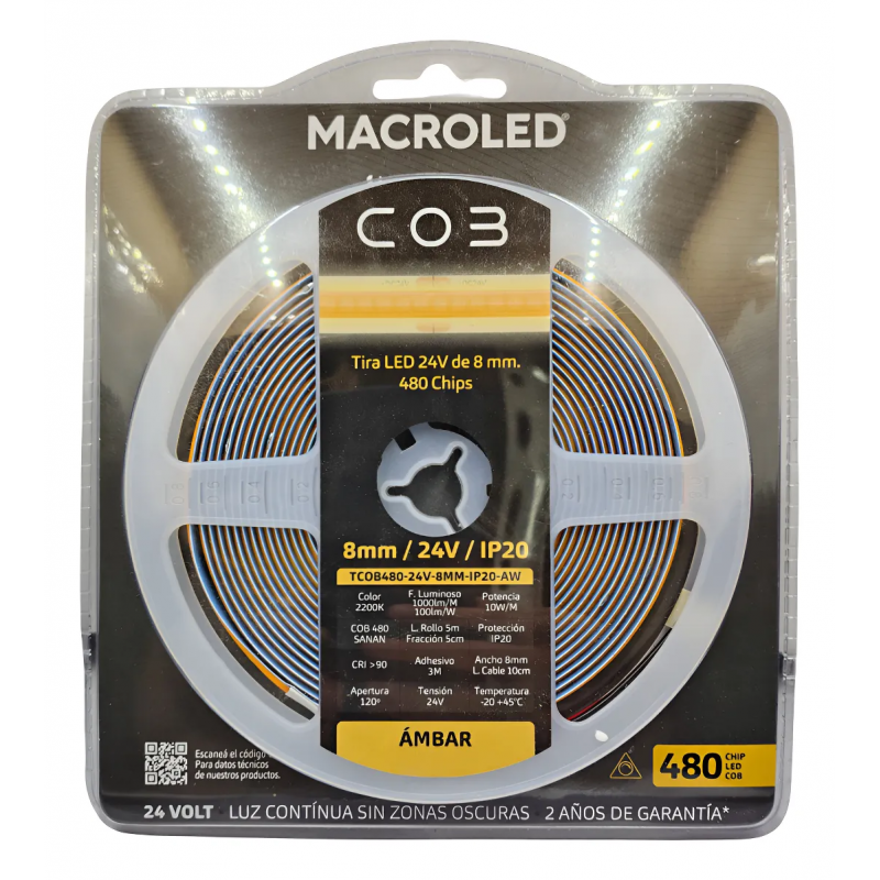 TIRA COB 480 LED AMBAR 24V IP20 10W 5MTS.